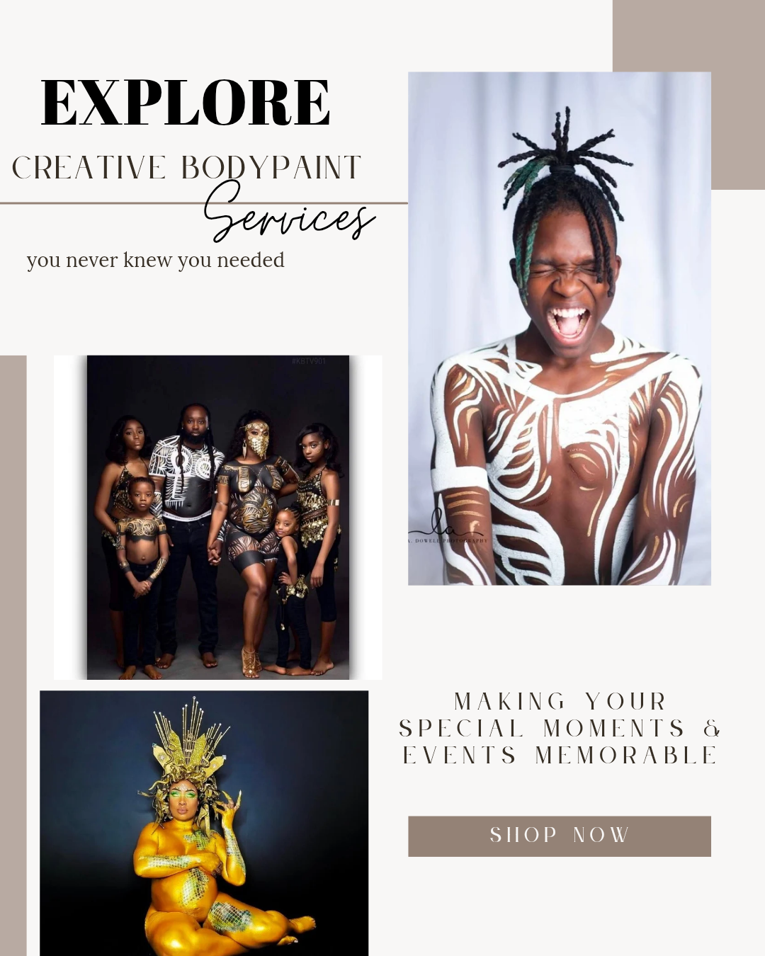 We offer a variety of services including bodypainting for: