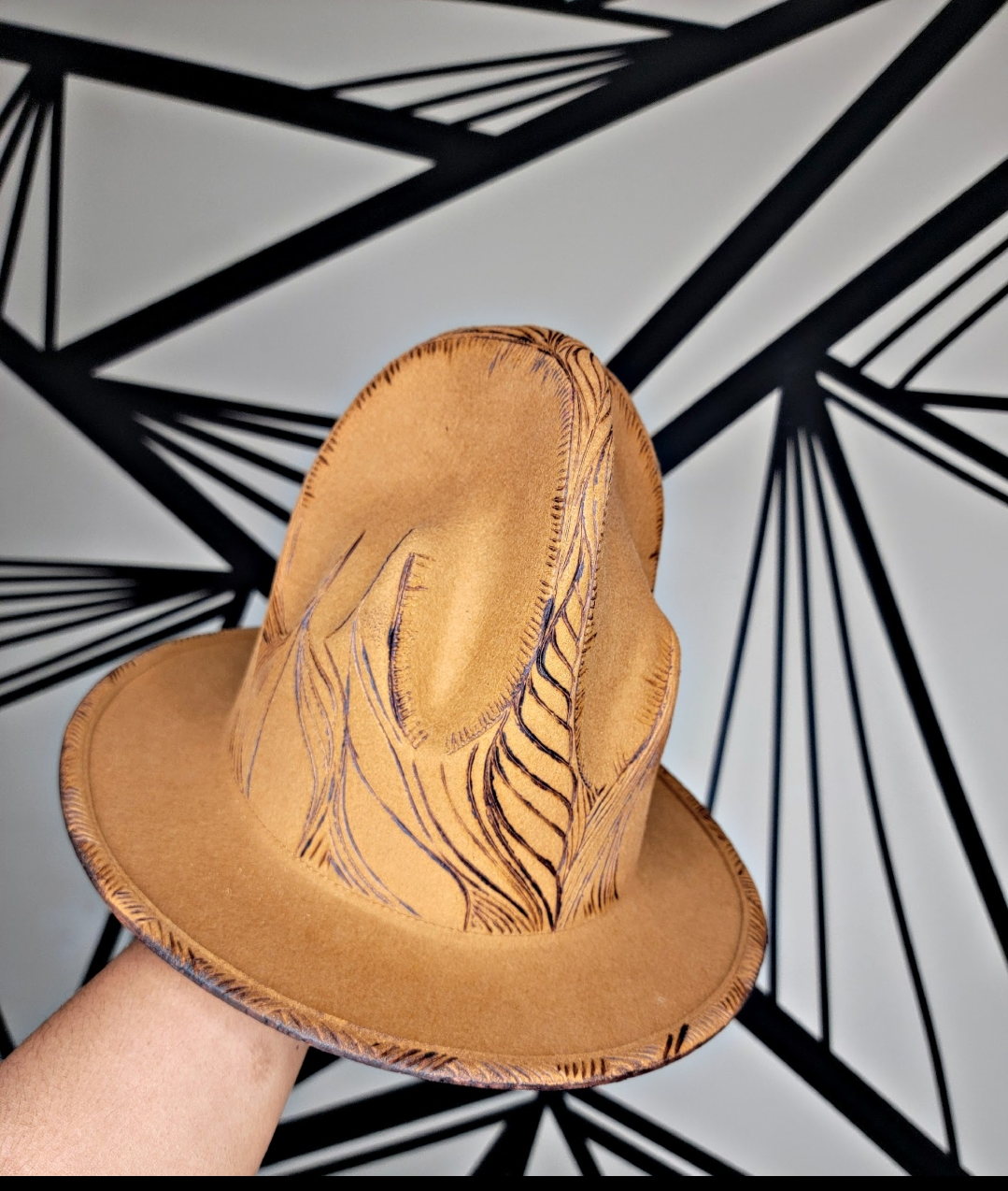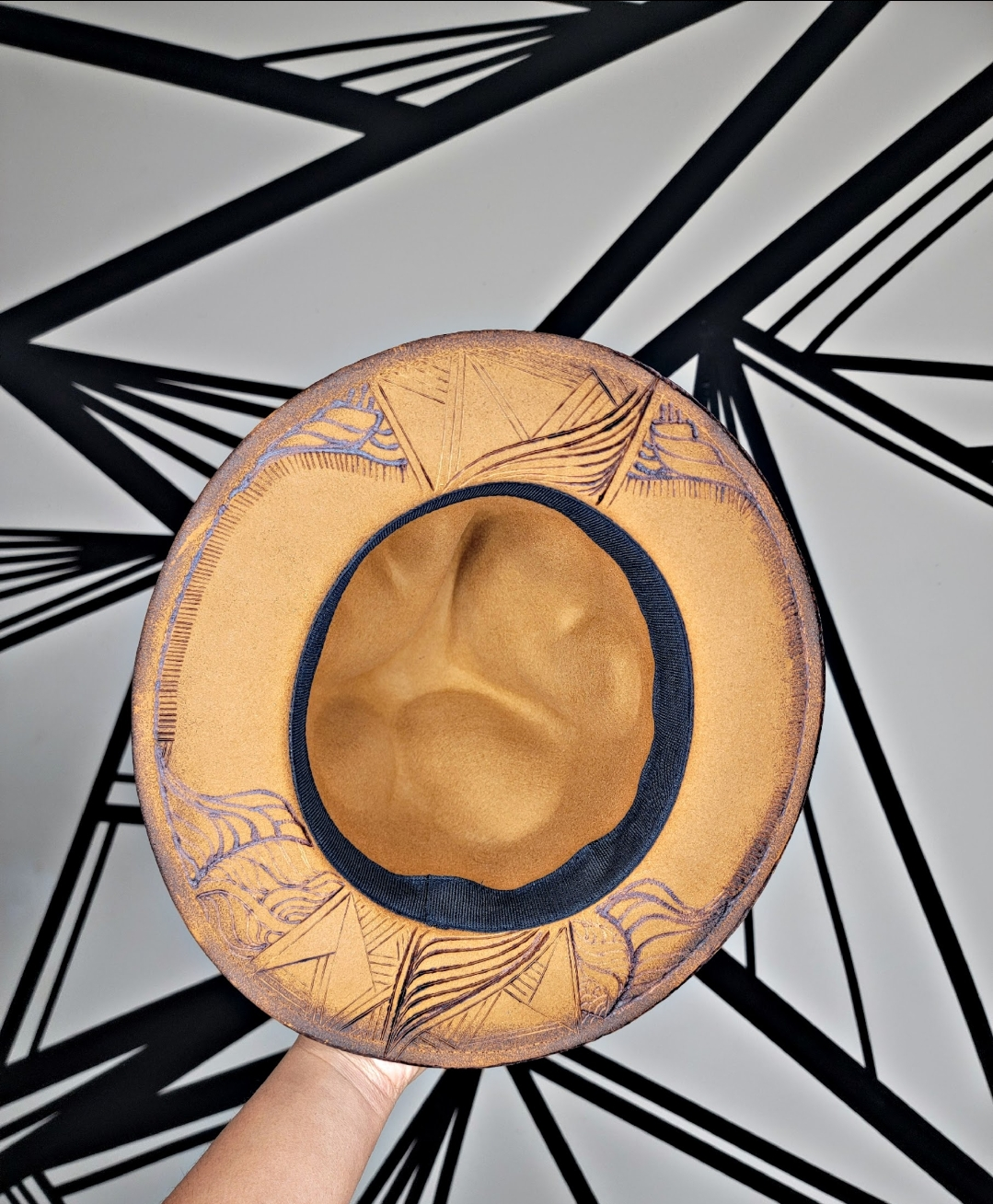Unleash your daring side with this must-have Pharrell Williams inspired Wool Asymmetrical Top Hat. The asymmetrical design and freehand custom burning create a 360 design that is truly one of a kind. Made with high quality wool, this top hat will make you stand out in any crowd with this unique accessory.